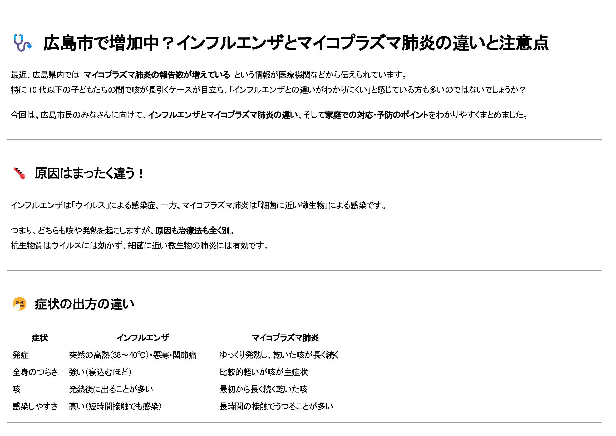 広島市で増加中?インフルエンザとマイコプラズマ肺炎の違いと注意点