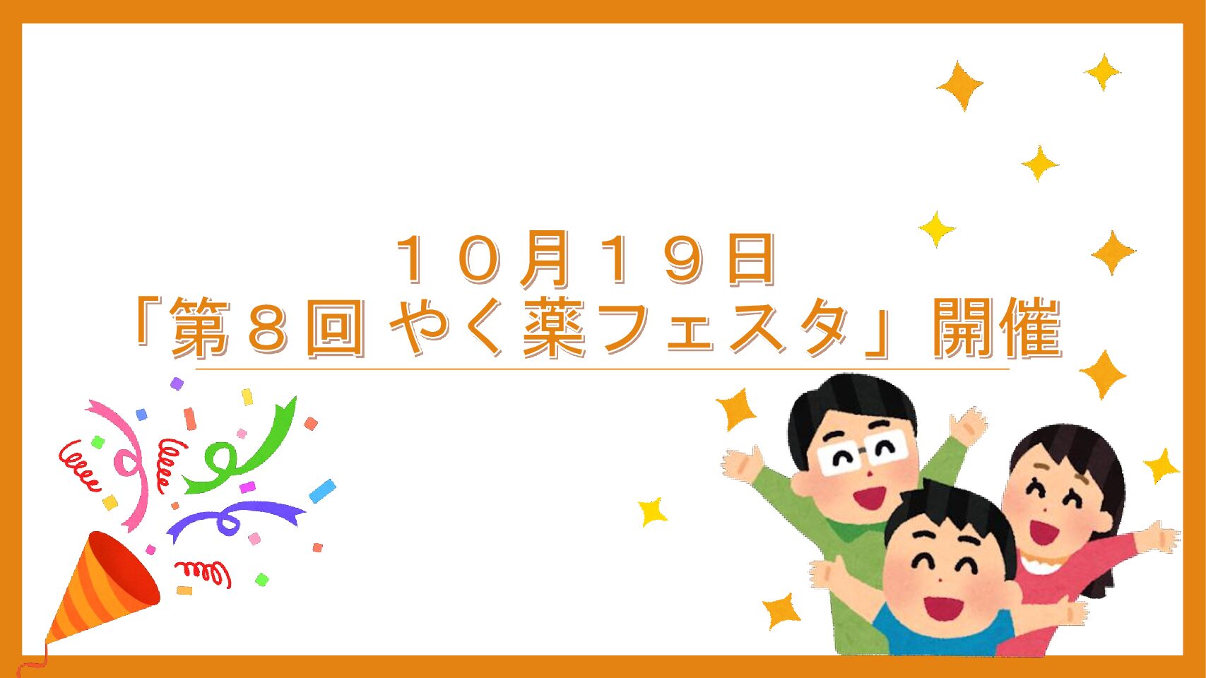 いよいよ10月19日に 「第8回 やく薬フェスタ」が開催されます。